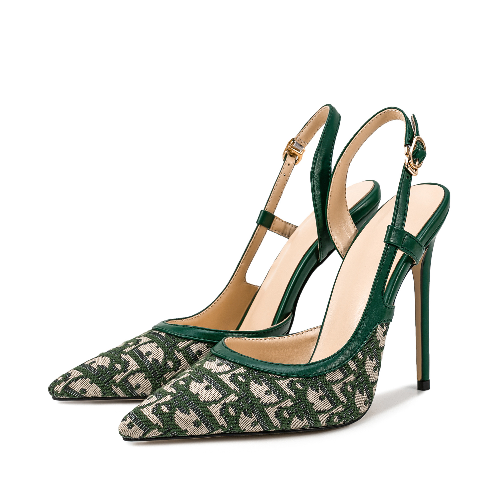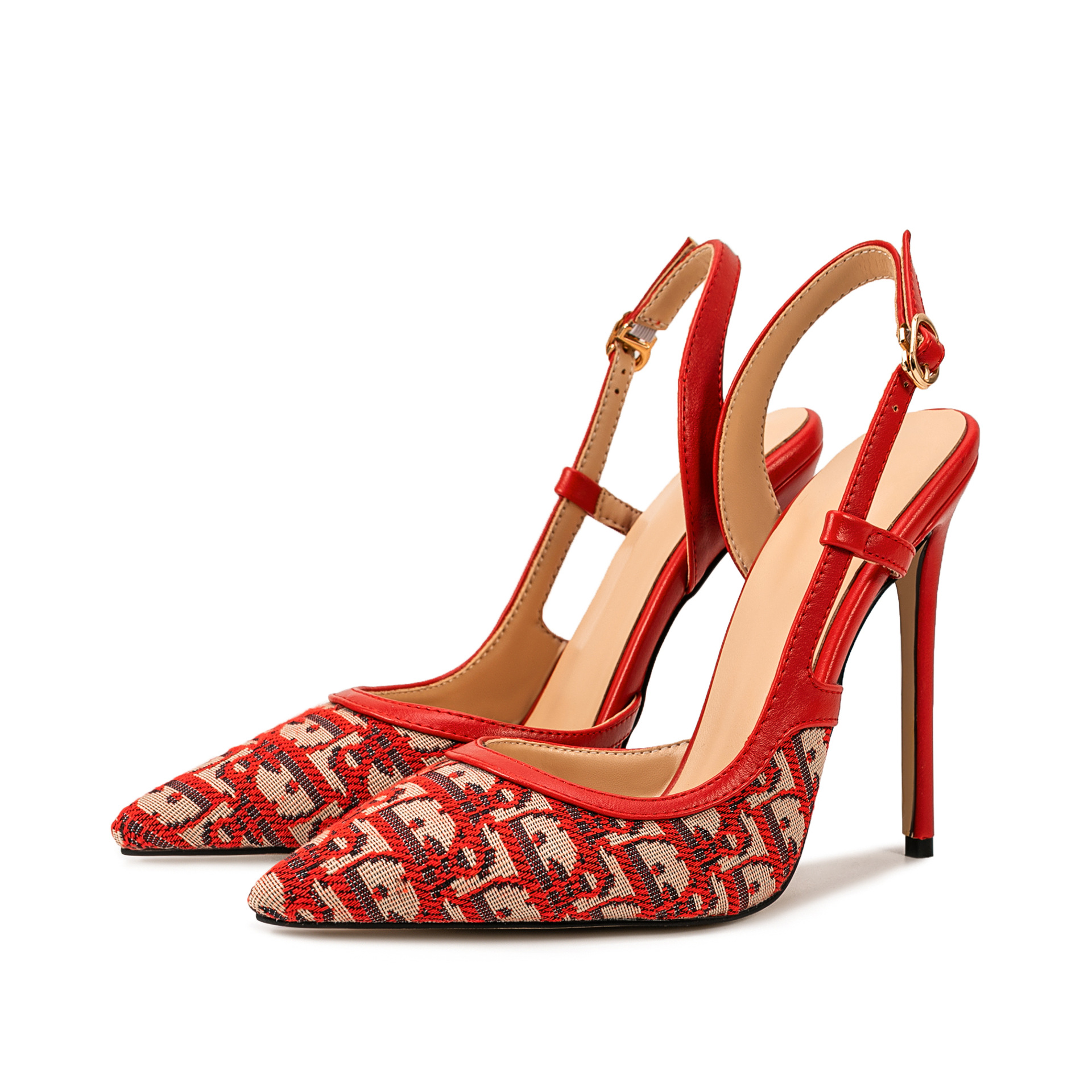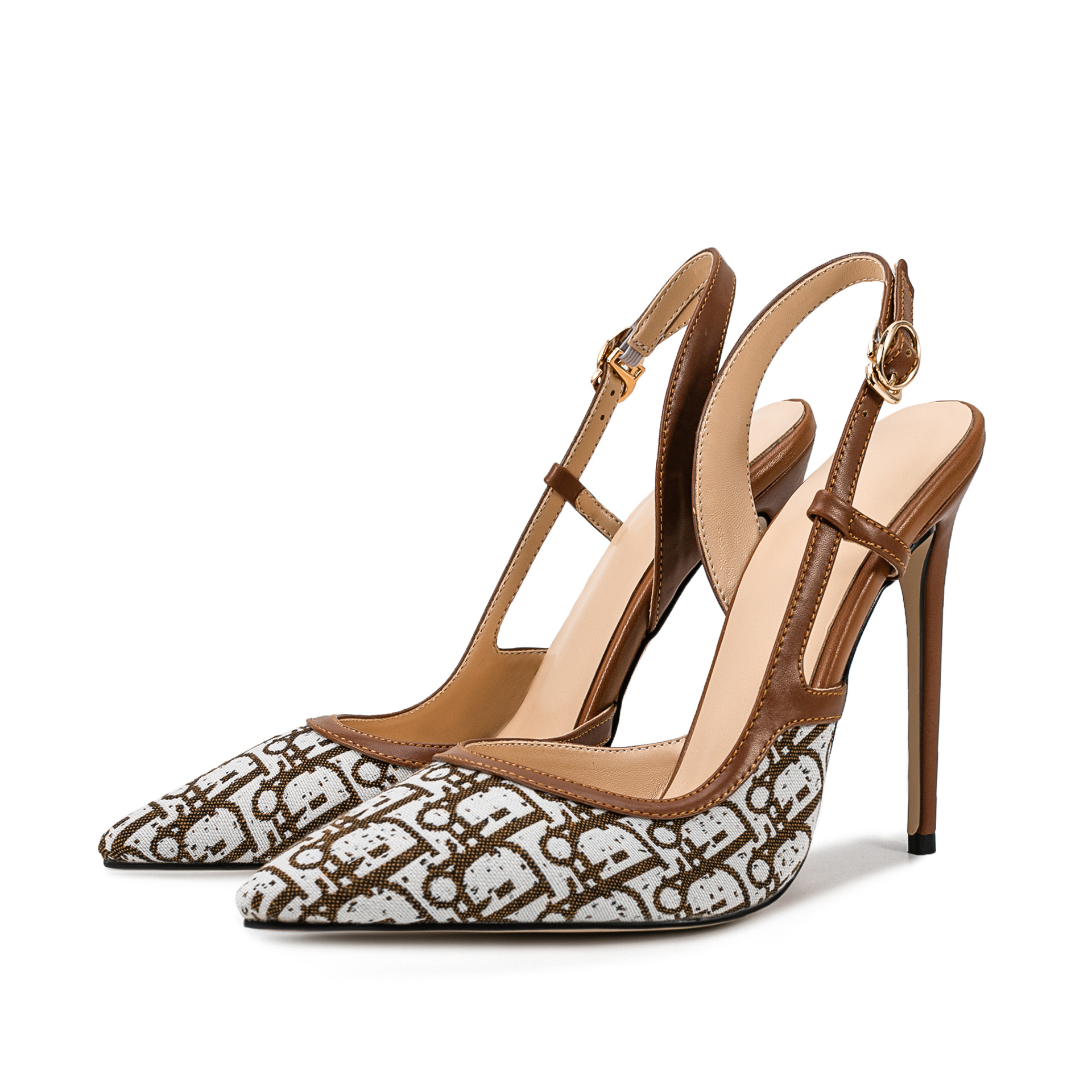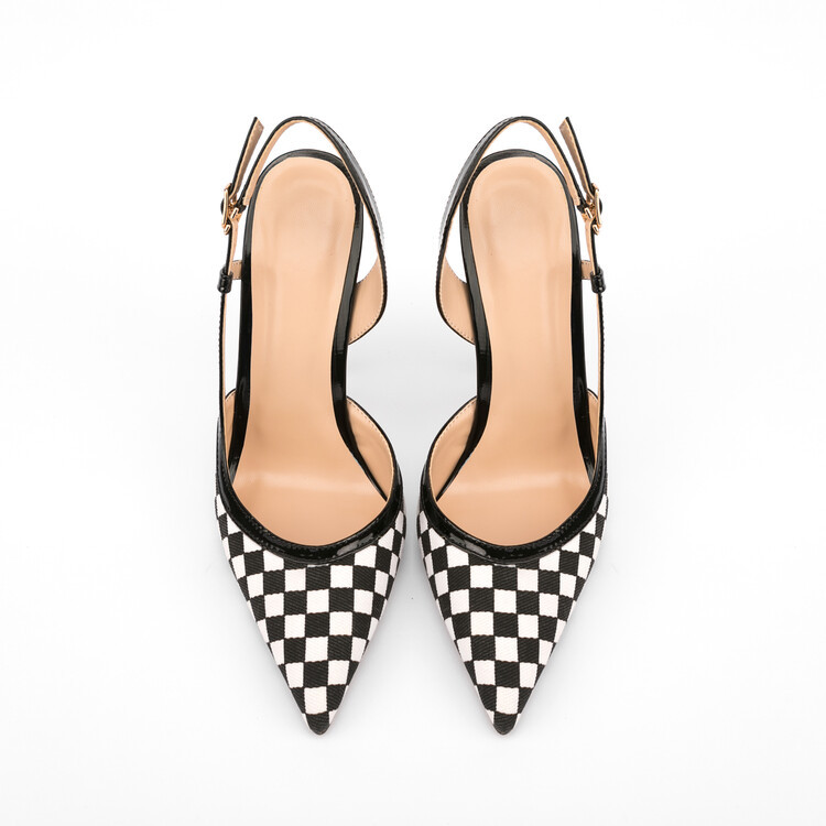 2025 summer new slim heel high-heeled shoes with grid pattern and toe strap, women's sandals, one-piece hair replacement to show leg length